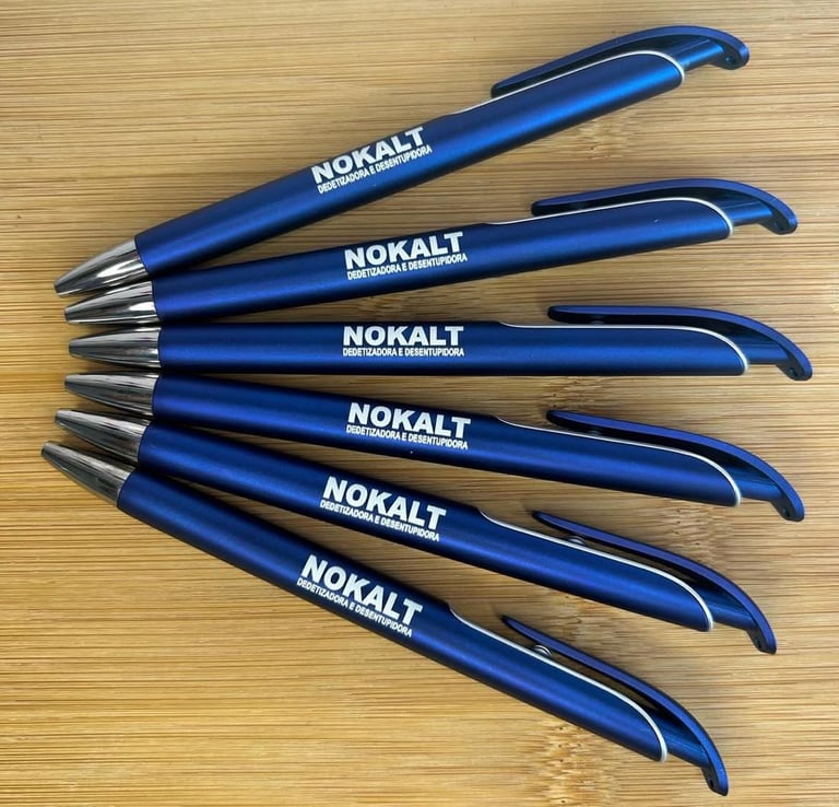 Nossas canetas personalizáveis são elegantes, funcionais e perfeitas para brindes corporativos, eventos ou presentes especiais.